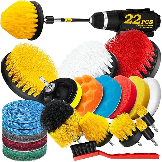 - 22 Piece Drill Cleaning Attachment Set & Buffer Polishing Accessories Set, Includes: 8 shape of medium drill power scrubber brushes,3 Piece different stiffnesses scouring pads,4 piece sponge polishing pads,3 piece microfiber wax applicator pads,1 gap brush,1 piece white wool buffer pads,4 inch backer and 1 extension rod. (DRILL IS NOT INCLUDED)